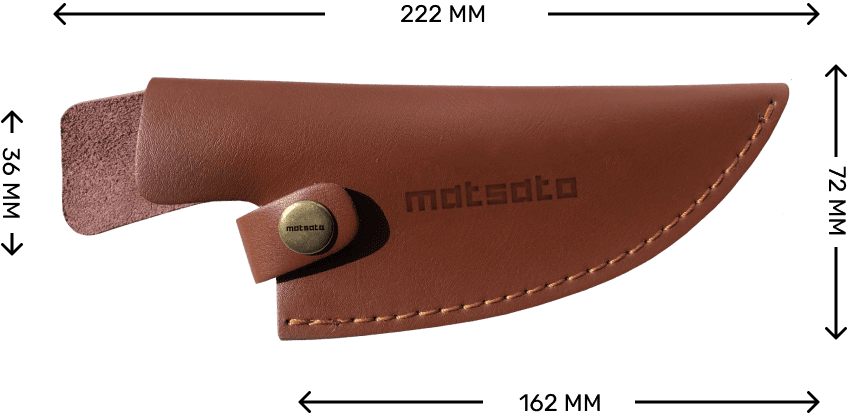 The Matsato Leather Sheath was created to perfectly mold around your Matsato knife, hugging it from the tip, right to the handle to keep your blade well protected. It provides extra padding to safeguard against accidental bumps and has a secure clasp to ensure your Matsato knife stays safely inside.